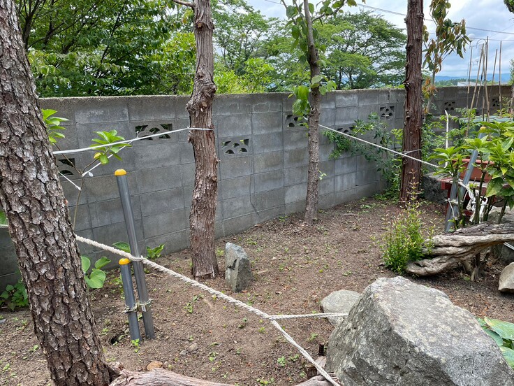 今は、庭にある大きな石にロープでけん引しながら活動を行っています。
