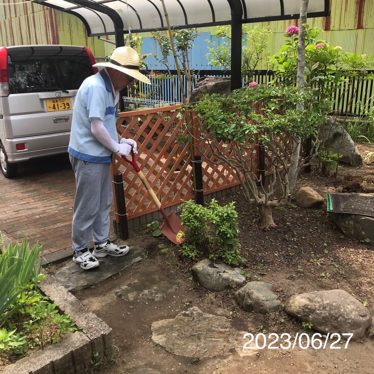 車いすや手押し車の方もいらっしゃるので、お庭のバリアフリーから始めています♬
