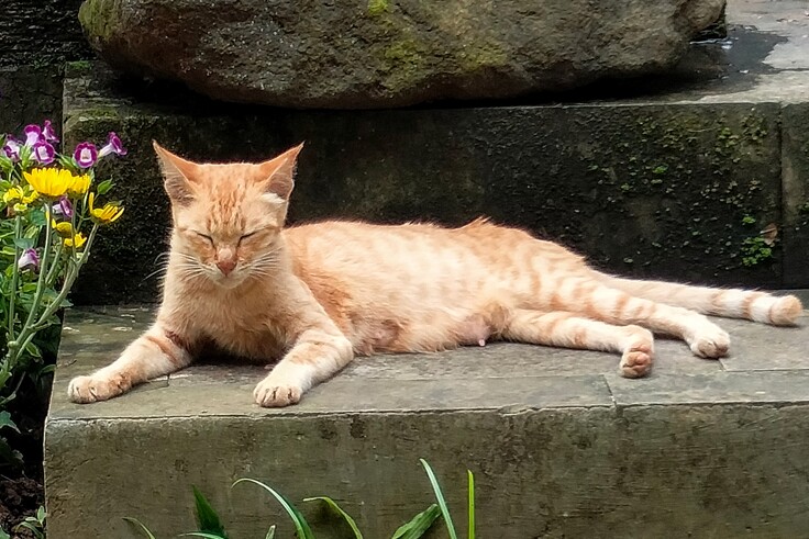 ハウスの庭に塀をつたって外猫ちゃんが来るようになりました。
