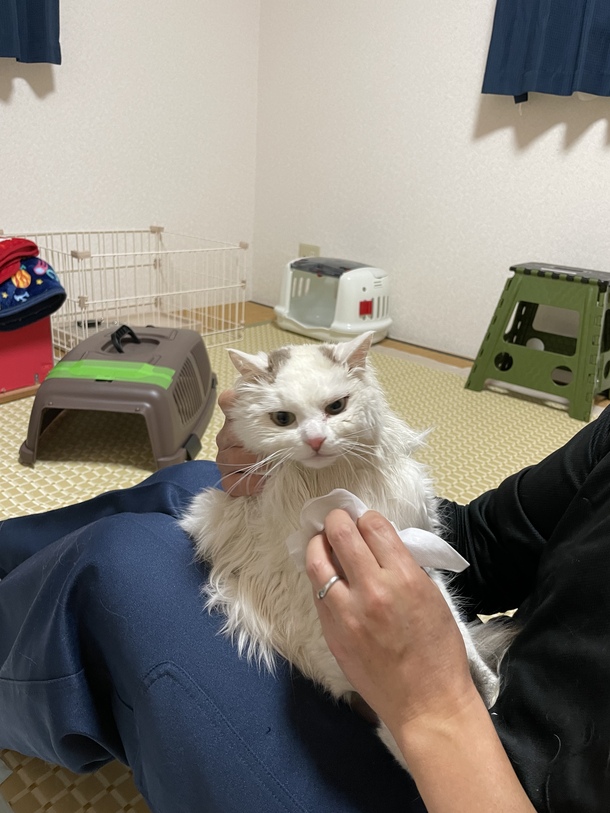 身体を拭いてあげると気持ちよさそうにしていました。