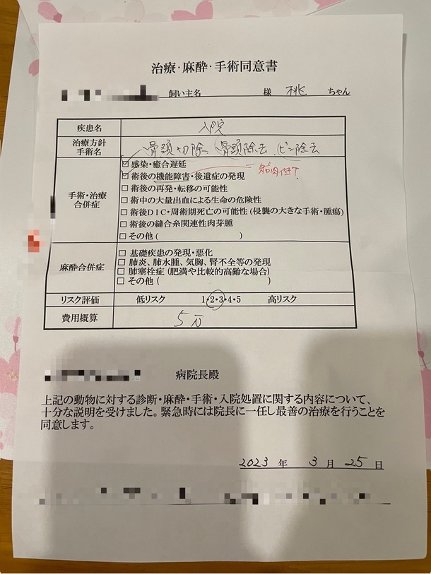 先日股関節からコキって音がする?と思ったのですが、今日抱っこして音とハッキリと添えた手にコキって感触があったので、病院に連絡して気になるようでしたら来院してください。との事で先生に詳しく調べてもらった所、ズレかけてピンで固定していた股関節がずれていて、明日手術になりました😢