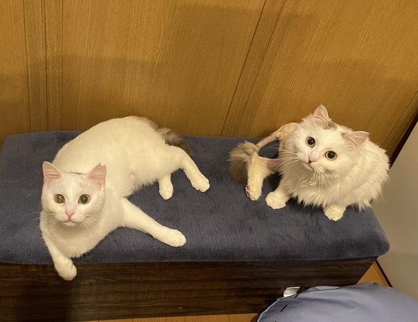 妹の白ちゃんもTNR予定から急遽我が家で保護しましたが、今ではすっかり馴染んで生活しています。だんだん桃ちゃんの事も思い出してきたかもしれません🙌