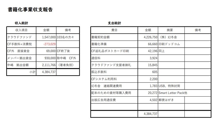 以上の通り、皆さまからご支援いただきました資金は、1円も無駄にすることなく、すべてを書籍化のために使わせていただきました。心から御礼を申し上げます。