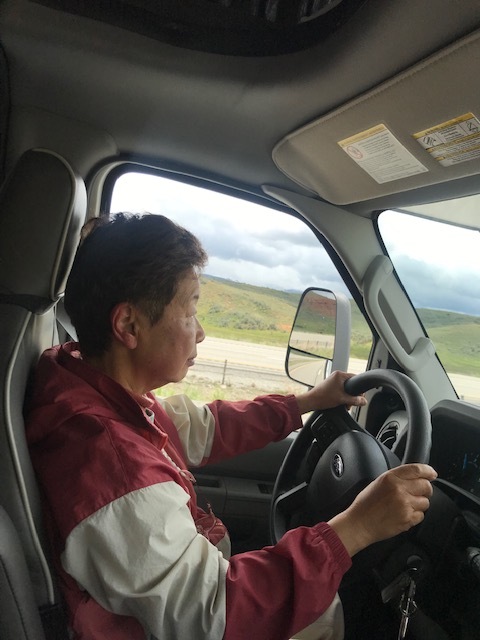2年間の事前打ち合わせ(旅行計画について)では、男性陣が運転手、女性陣は食糧調達、炊事・会計などと大まかな役割分担を決めました。そして私は運転手の補助という役割でした。というのは、ハワイのマウイ島やハワイ島での個人旅行の際にレンタカーを借りて自分で運転したことがあり、車の運転は好きな事でした。日本の免許証・アメリカでの許可証(DLT)も用意してありましたが、心中ではアメリカ本土で女の私がキャンピングカーを運転することはないだろうと思っていました。だって、大型バスサイズですよ!!!