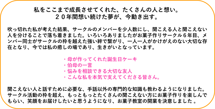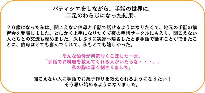 「聞こえない方たちにも手作りスイーツのすばらしさを味わってほしい、一緒に共感したい。」