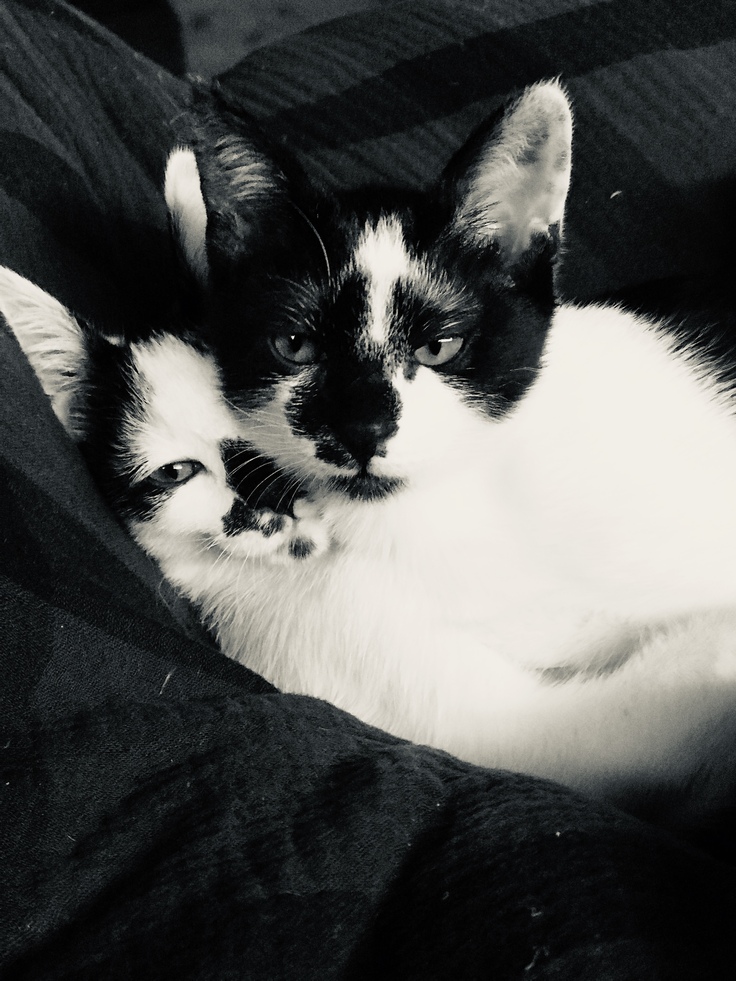 ※上に乗っている、額に麦のような模様があるのがコムギ