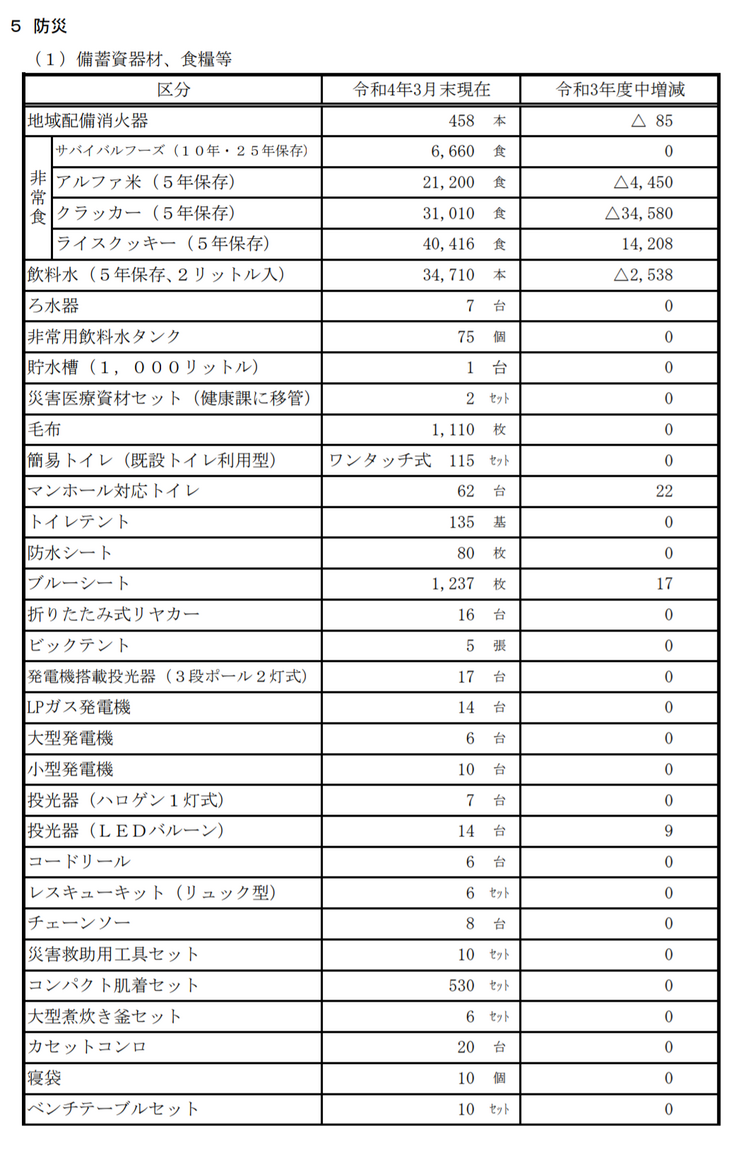 そして、調べ始めて分かりましたが、備蓄品目のリストは、自治体のサイトの深い所(実際に電話で問合せて説明されないと辿り着くのが難しい程)に表示されています。