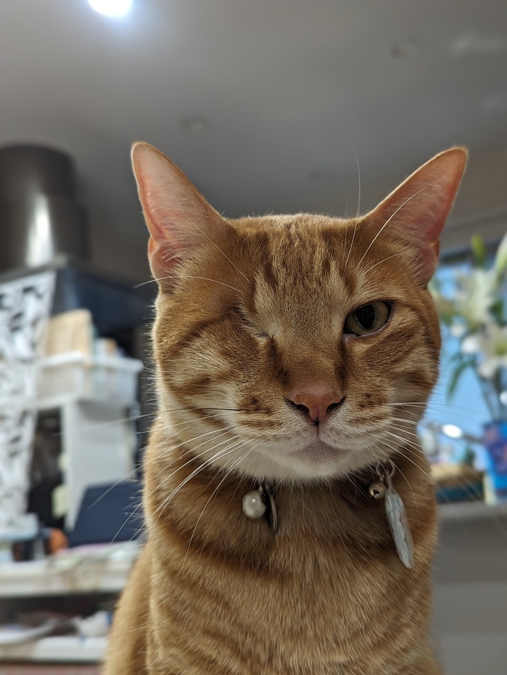 片目がないのをまったく感じさせないほど、元気に過ごしています。