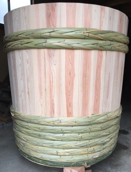 埼玉県飯能産の西川材、越生産の真竹を使い、30石(5,400ℓ)の木桶を製作します。