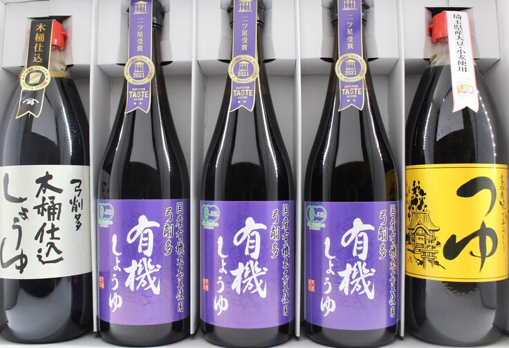 ■地元埼玉県産大豆、埼玉県産小麦、天日塩を使用した木桶仕込みしょうゆ、木桶さいしこみしょうゆ、丸大豆醤油を製造しております。