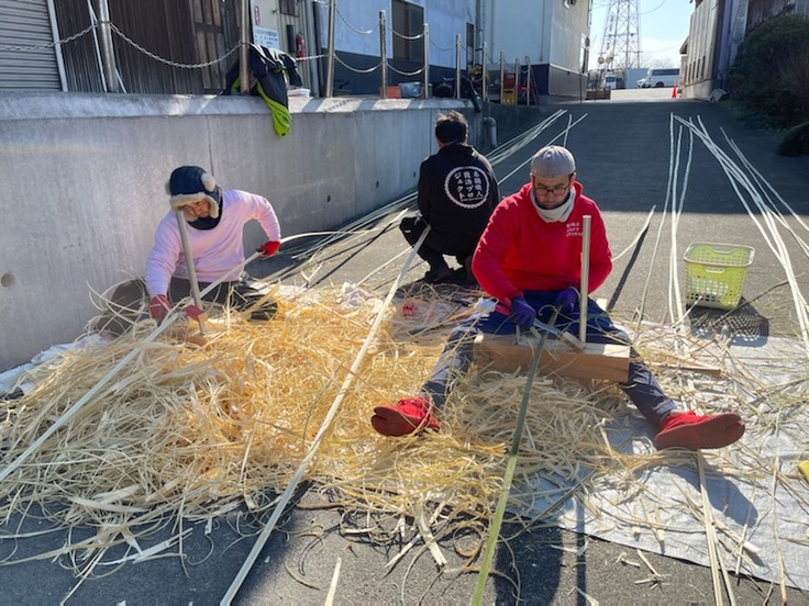 香川県小豆島の木桶職人棟梁、福島県郡山市の木桶職人などと共に弓削多醤油社員が一丸となって、