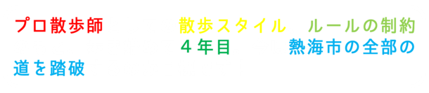 はじめまして。日本各地の道を”歩く”活動をさせていただいております散歩師・七瀬るう(通り名)です。散歩師としてこれまで6年以上、いろんな地域を歩き続けています。現在は、経済的な事情・体力的な事情から熱海をメインの活動地としておりますが、いずれは全国へと活動を展開させていきたいと考えています。