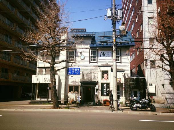 (店の外観です。青い看板と、可愛い女の子の写真が目印!)