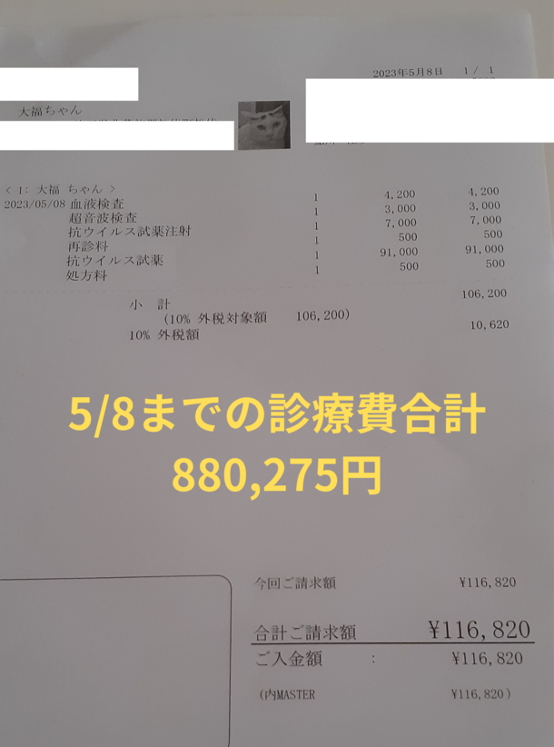 ご支援していただいた支援金は、すべて大福の治療薬と治療にかかった費用に当てさせていただきました🙇♀️