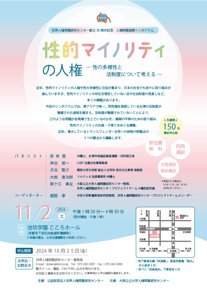 ≪世界人権問題研究センター創立30周年記念 人権問題国際シンポジウム≫