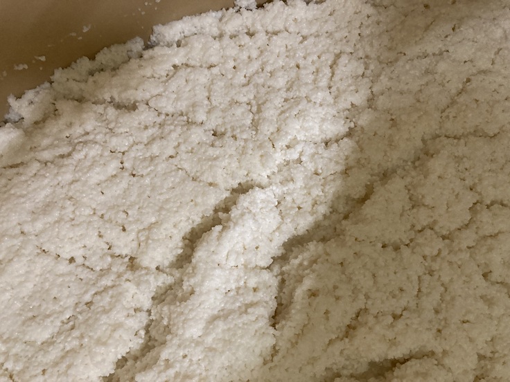 朝イチに水を吸って膨れた醪のガス抜きを行いました(*^^*)