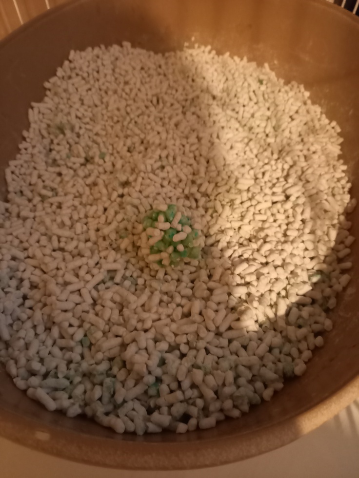 長い時間みてました。いつも、グレちゃんのおしっこをする個室のトイレにはいると、長く座ってました。トイレのあとを確認するとおしっこはパラパラとしてありましたが塊はありませんでした!これは、また、つまり始めたと確信しました。今朝、トイレに行った時、様子を見ていたらなんども紙砂をかけ、がりがり