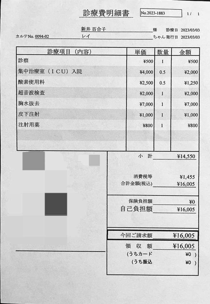 ページ上に掲載している診断書や診療明細書などの資料は全て動物病院から掲載の許諾を得ております。
