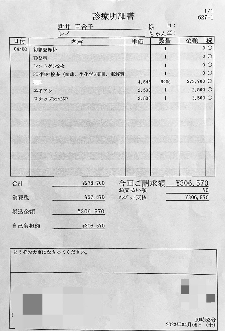 本来であれば飼い主として責任を持つべきなのは重々承知しておりますが、未承認薬を使用するためとても高額になってしまい、全額を支払うのは経済的にとても厳しい状況です。