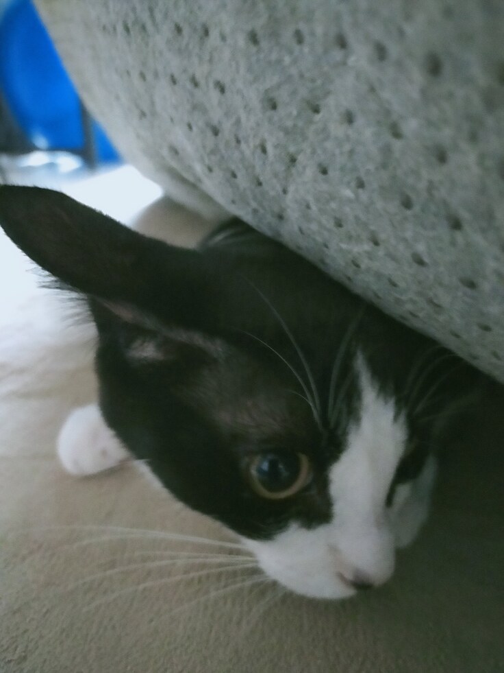 りくは、左のラグの下にかくれんぼです😅