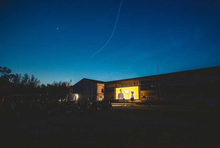 東小学校の校舎へ投影しての、野外上映会は大盛況におわりました!