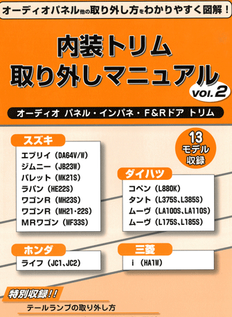 内装トリム取り外しマニュアル Vol.3〈オーディオパネル特集〉書籍について本書は「オーディオパネル取り外し」に特化した一冊で、テレビアンテナ取り付けのために必要となるAピラーの取り外しも収録しています。また、参考収録として「初めてのナビ取り付けガイド」を巻末に収録しています。[収録範囲]国産乗用車222車種(約10年分)発行日: 平成26年9月発行ISBN: ―サイズ/ページ数: A4判 352ページ