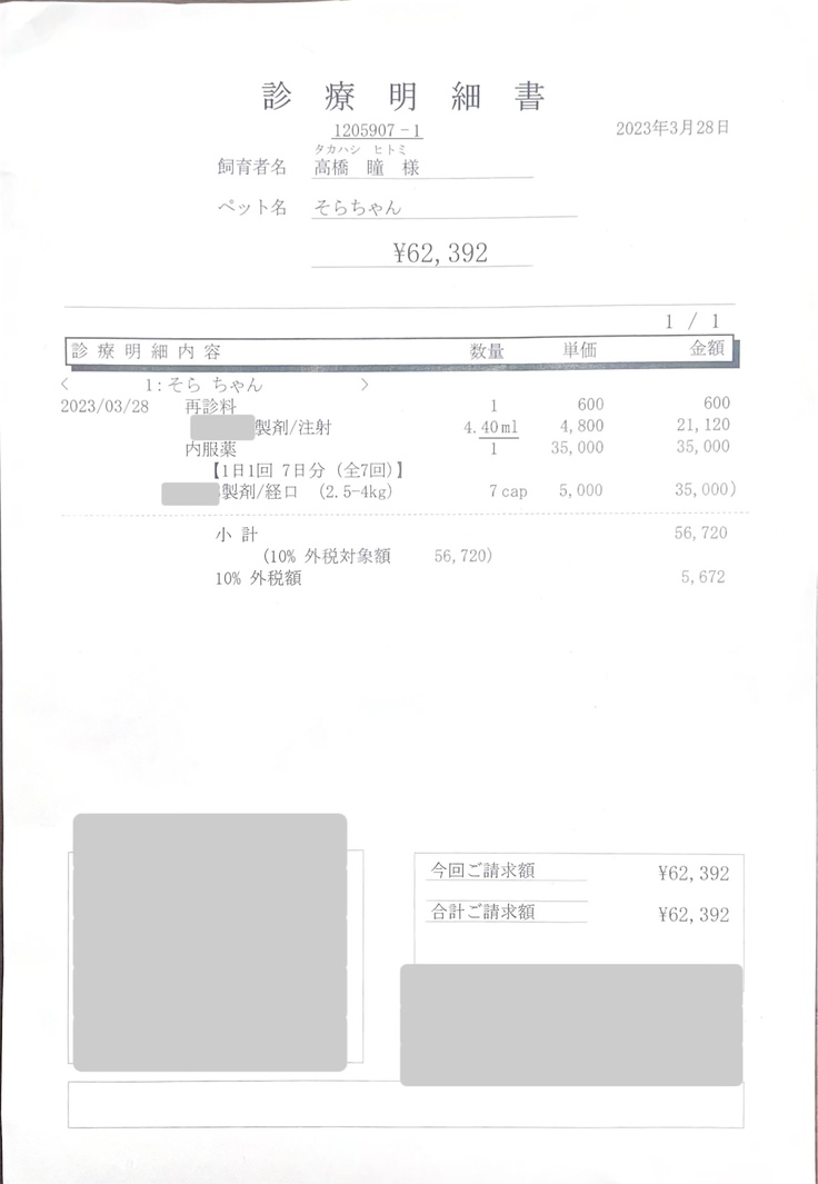 ▶︎4. 掲載している資料についてページ上に掲載している診断書や診療明細書などの資料は全て動物病院から掲載の許諾を得ております。