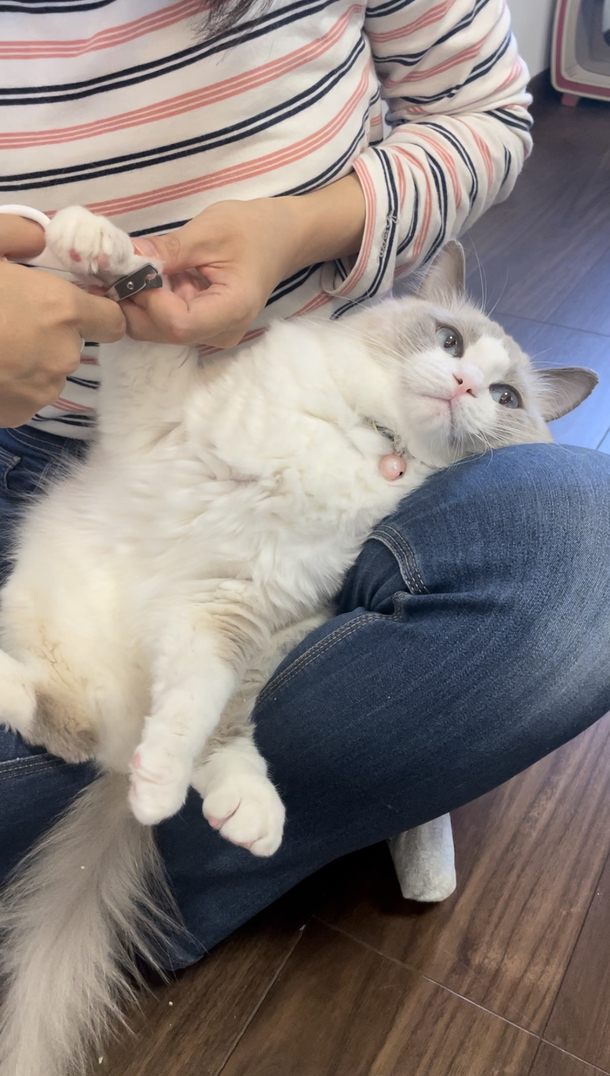 最初嫌がるそぶりを見せていましたが、落ち着いて切ることが出来ました!