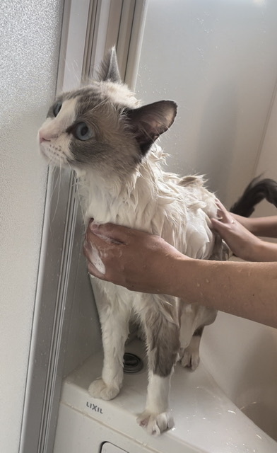 嫌がる様子はなく、最後まで落ち着いてシャワーすることが出来ました😌