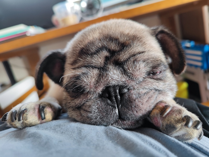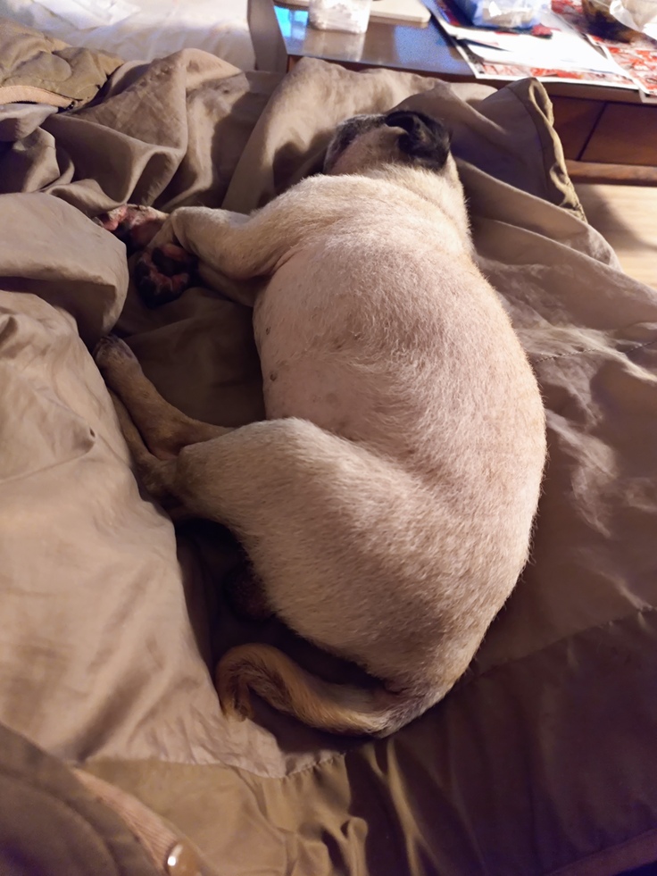 パブちゃんは相変わらず、よく寝てます。わたしのお腹の上に寝るのは好きです🌝
