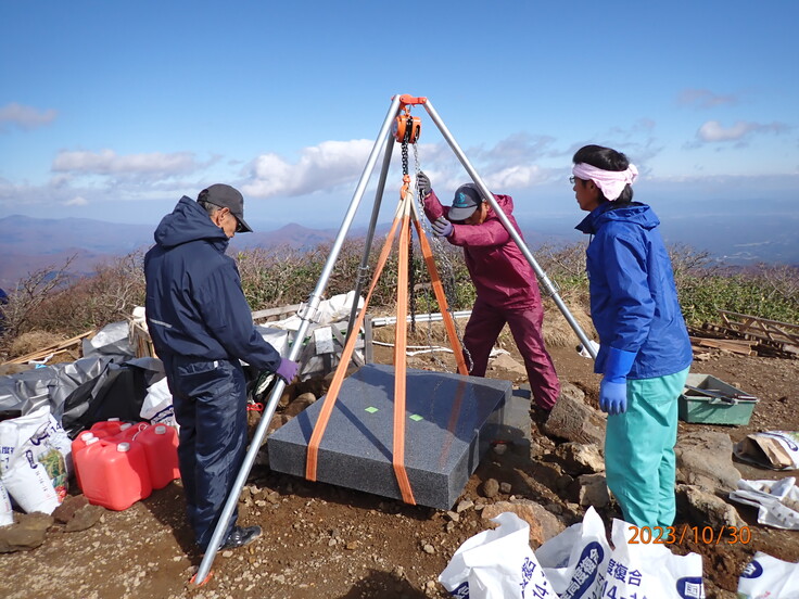 11月4日 駒形根神社奥宮再建工事 石宮組立てと設置完了