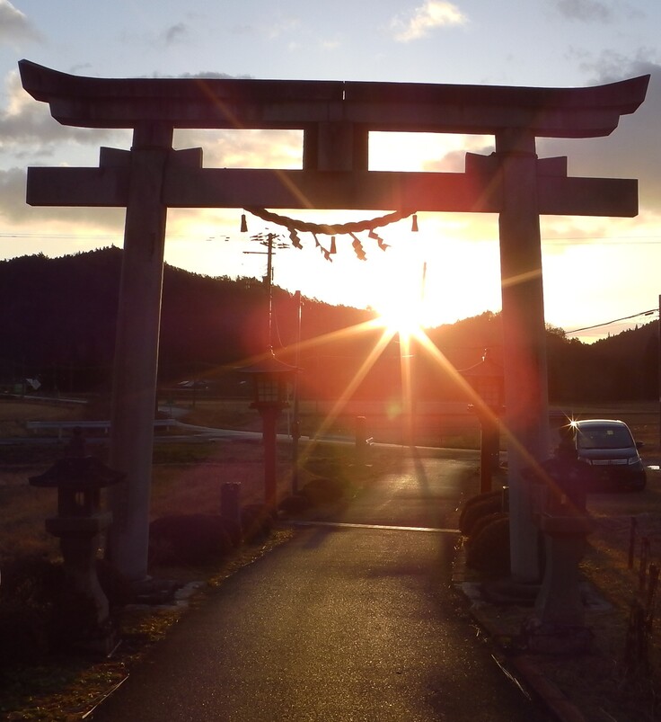 駒形根神社本社鳥居からの初日の出(午前7時ごろ) 気温4℃