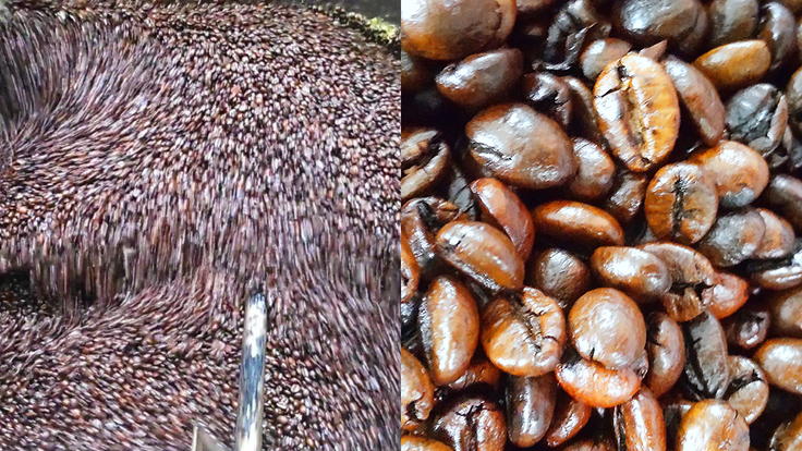 ロブスタ、アラビカのブレンドを薪焙煎後にバター焙煎。