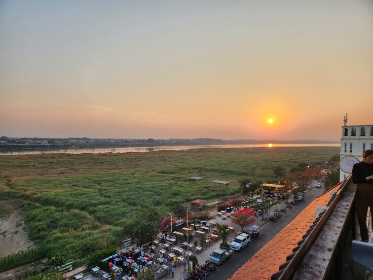 画像はラオスをはじめ東南アジア5か国を流れるメコン川に沈む夕陽