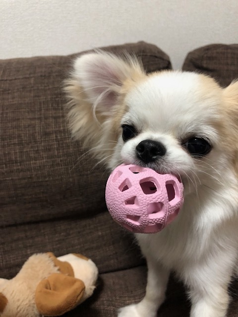 相変わらずボールが好きで投げてほしそうに持ってきます。