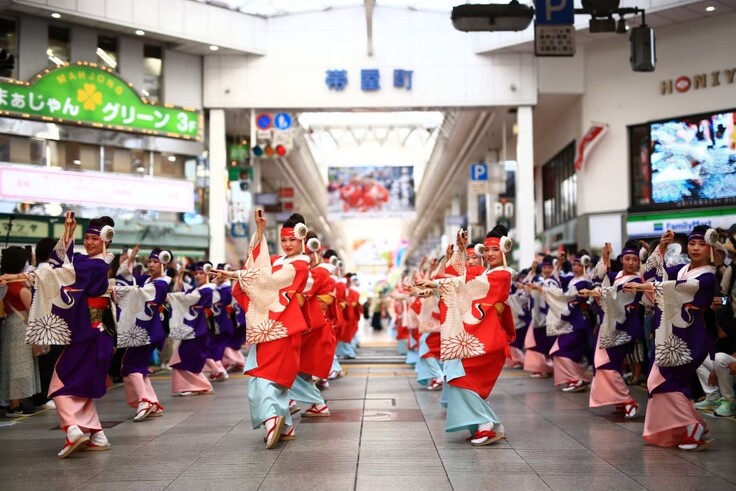 いくつかのルールを守っていれば、曲も振付も衣装も自由です。 多種多様な曲に合わせて、老若男女問わず沢山の人々が色鮮やかな衣装とチーム毎に特色ある踊りで高知の街中を活気づけます。 各チームの踊り子さんは夏の期間は休みや空き時間をすべてよさこいに捧げるほどの「熱意」を以って臨んでいます。