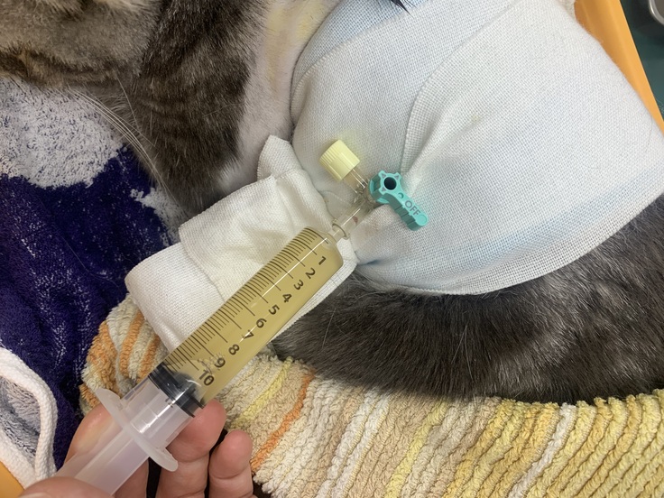 精密検査の為、更に大きな病院での日程調整をしている間にも何度か抜水を行いましたが、当初は7日に1度の抜水が5日、3日と抜水のペースは短くなり、呼吸も荒くなる日々が続きました。