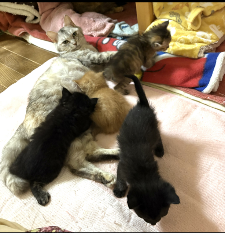 山にいたお母さん猫は栄養失調だったり、風邪を引いていたり、体が弱かったり。