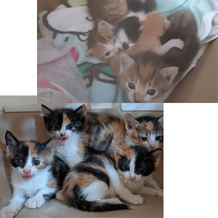 そしてあいついで更にお母さんのいない三毛猫ベビーちゃん4匹もきて、10匹子猫を含む三毛猫屋敷と化していました。