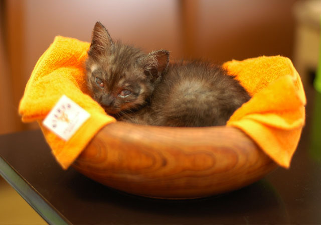 生後二ヶ月に満たないくらいの子猫だったので、すぐにそのまま抱っこすると、特に抵抗することなく保護することができました。