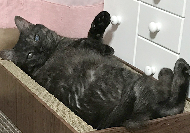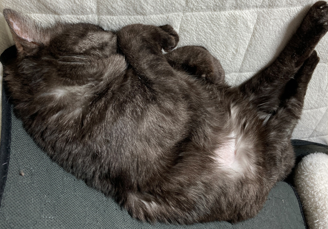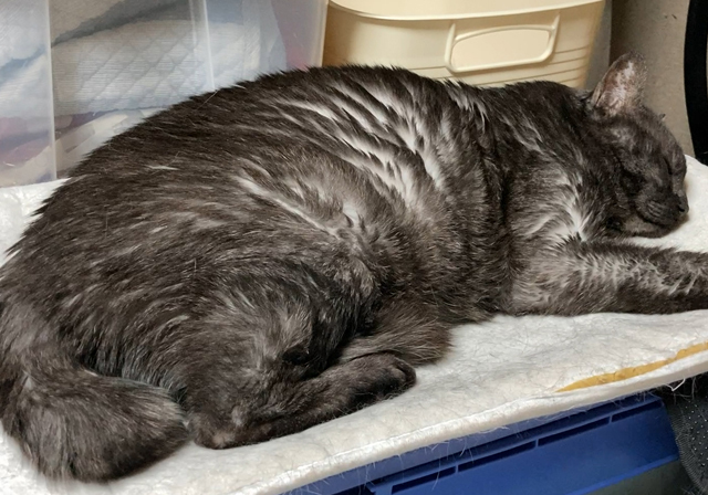 最近は、変形性関節炎の症状に悩まされましたが、ワンちゃん用のいい薬が猫ちゃんにもよく効くことがわかり、毎月の投薬でとても元気に過ごしていました。