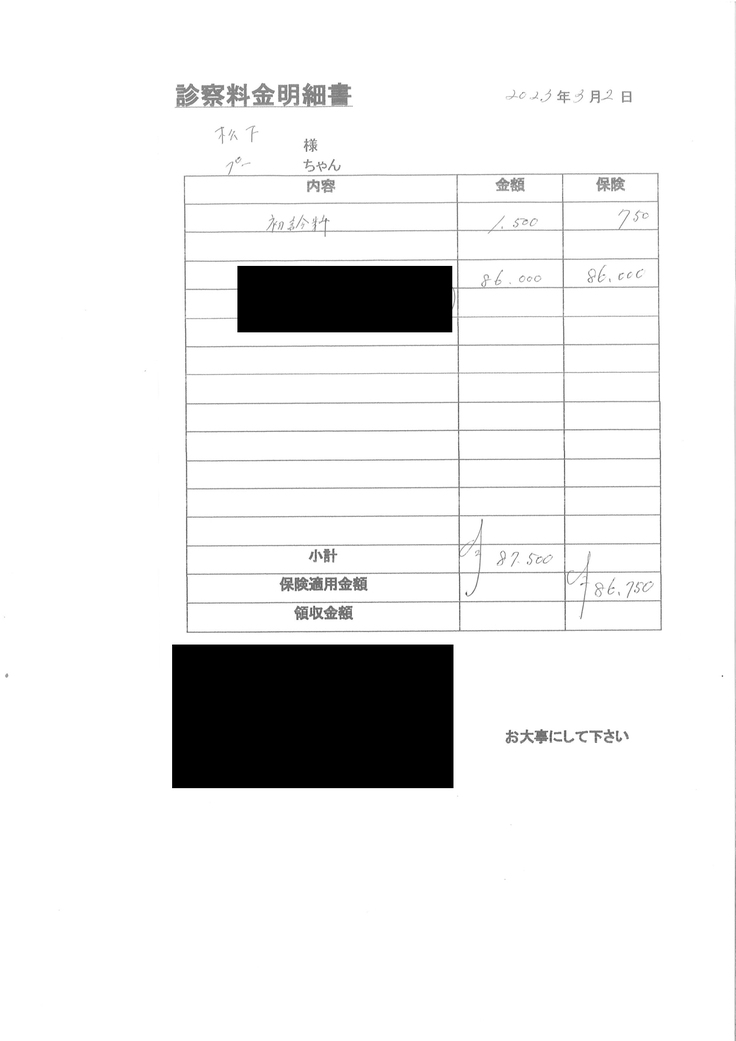 ページ上に掲載している診断書や診療明細書などの資料は全て動物病院から掲載の許諾を得ております。
