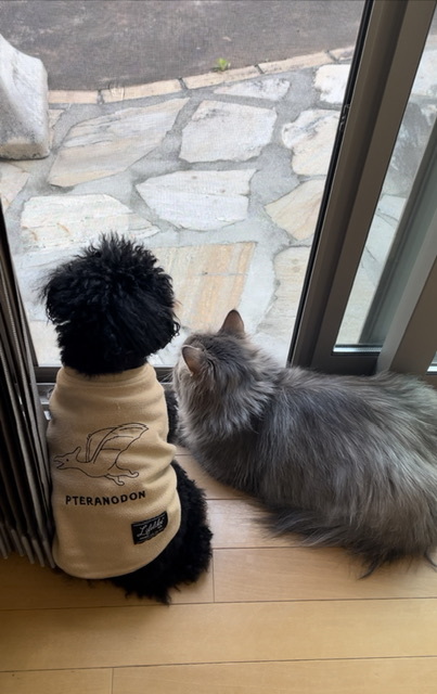 ここ最近天気がとても良く、今日はくぅちゃんと一緒に仲良く外を眺めていました☺️🌸
