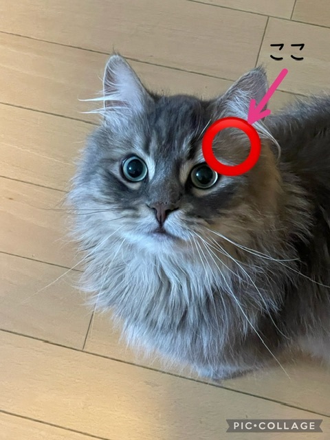 長毛種で写真では分かりずらいのですが、左耳下のところの毛が薄くなり、皮膚が透けて見えている状況でした💦
