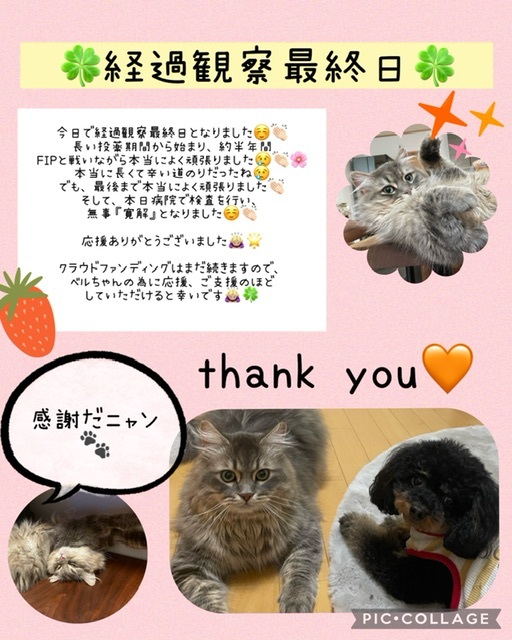 長い投薬期間から始まり、約半年間FIPと戦いながら本当によく頑張ってくへました😢👏🏻🌸