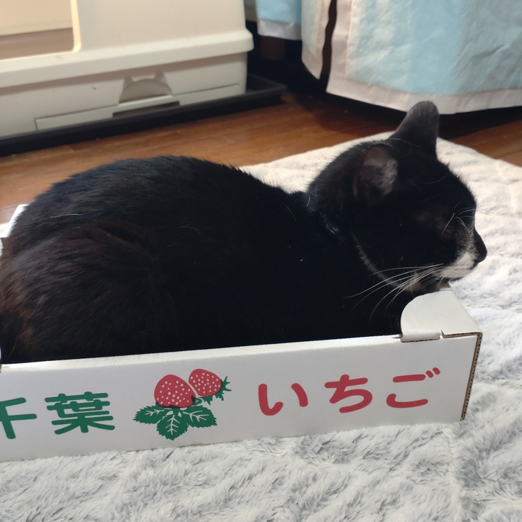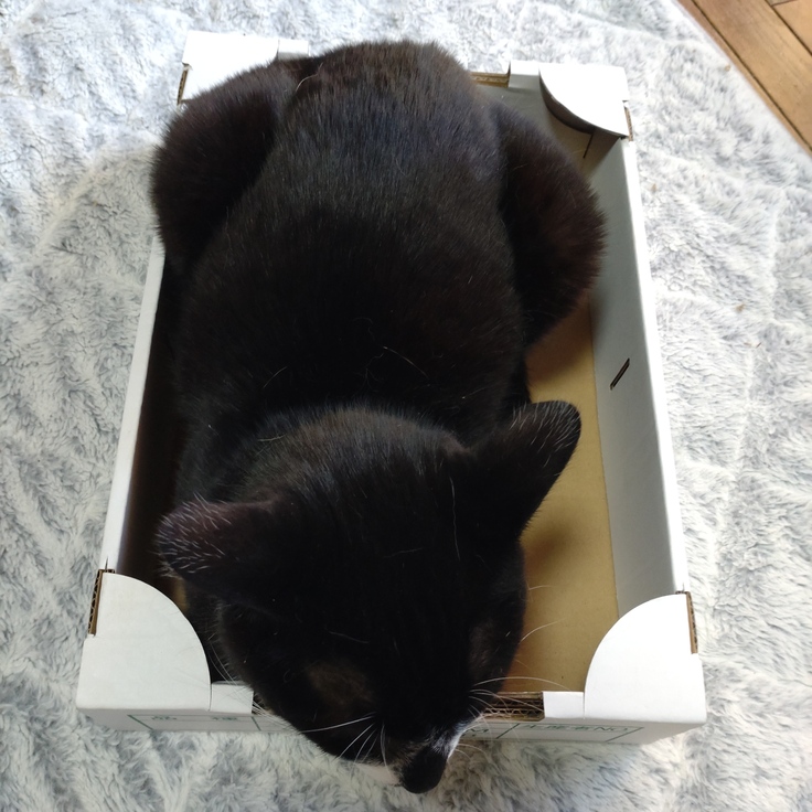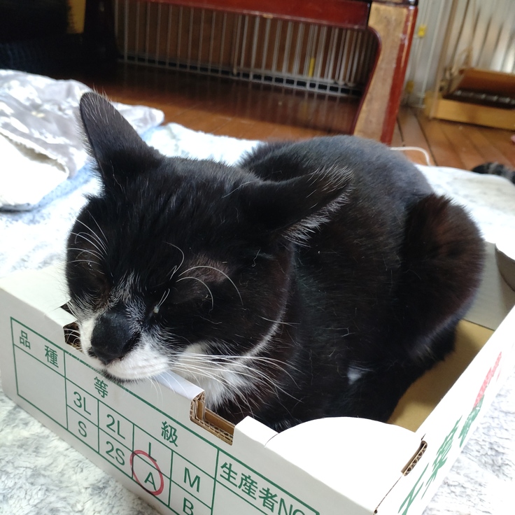 小さな箱に小柄なのですっぽり😊