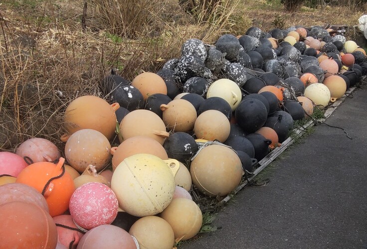 震災で不要になった養殖資材と竹材をいか