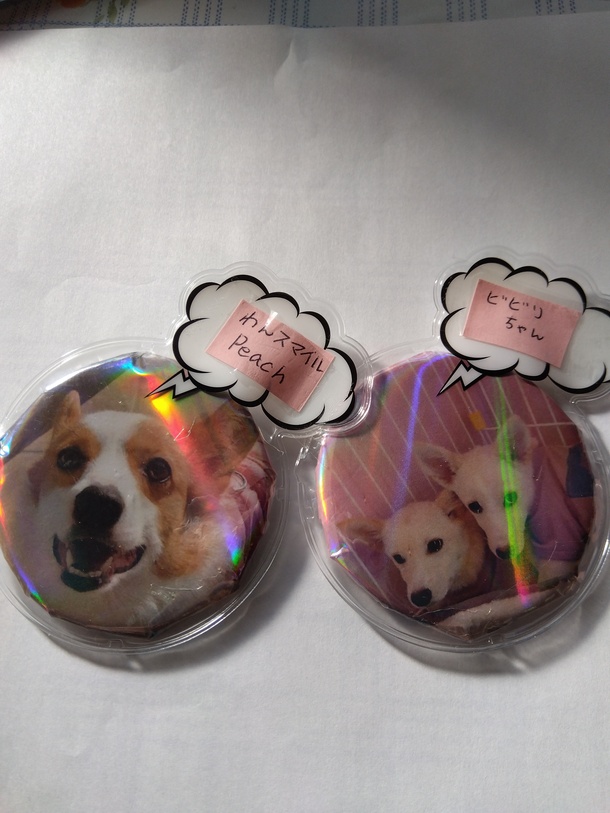 試作品は、57mmにしてみました。 缶バッジケースにも入れてみました。 カワイイです。 色々と写真を集めてカワイイバッチが出来ると思います。