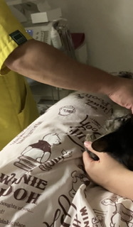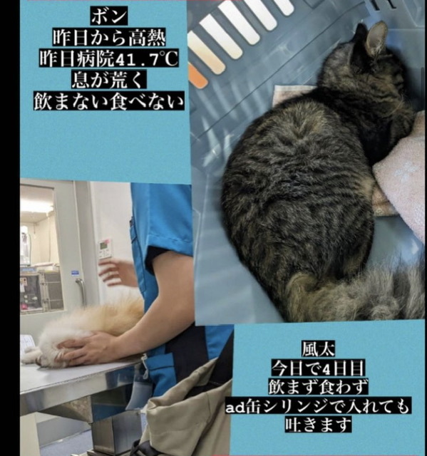 風太くんもシリンジで流動食、点滴頑張ってます