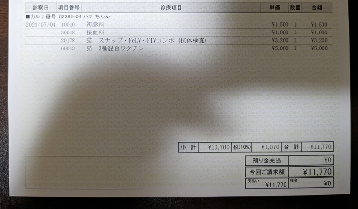 ハチ君を動物病院へつれて行きました。